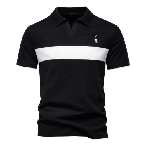 Men’s Fashion Polo excellence defined by clean lines and premium details. This standout Contrast Stripe Shirt features a bold olive-toned horizontal band against a crisp white base, offering a modern twist on a classic silhouette. Designed as a sophisticated Embroidered Lapel Top, it includes a unique animal motif and a refined open-neck collar. This high-quality Short Sleeve T-shirt alternative is engineered for Versatile Casual Wear, providing a breathable and structured all-match staple perfect for upscale summer outings.