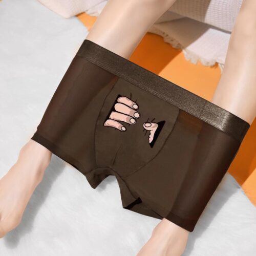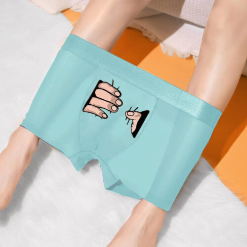 Make everyone smile with these hilarious men’s funny novelty boxer briefs, featuring a bold comic-style hand-grab graphic print men’s trunks design that breaks the ice every time. Crafted from ultra-breathable cool mesh men’s underwear fabric in a sleek blue/grey colour-block style, they keep you cool and comfortable all day. The ultimate men’s humorous gift underwear for birthdays, Secret Santa or any occasion, these breathable fun men’s boxers deliver standout personality without sacrificing comfort, quality or style.