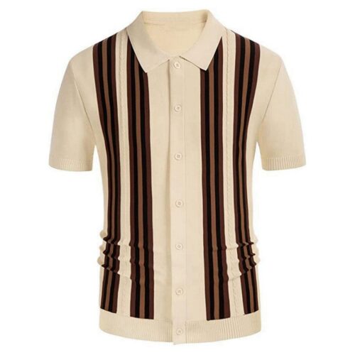 Redefine your professional wardrobe with this premium Men’s Knit Polo. A sophisticated Short Sleeve Slim Fit essential, it functions as a lightweight Business Sweater featuring an elegant Green Striped Polo design with vertical earth-toned accents. This Casual Button Up knit offers a modern, tailored silhouette that provides more structure than a standard tee while maintaining a soft, breathable feel. Perfect for an all-match aesthetic, it transitions seamlessly from boardroom meetings to evening leisure in style.