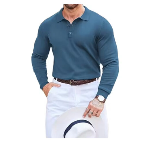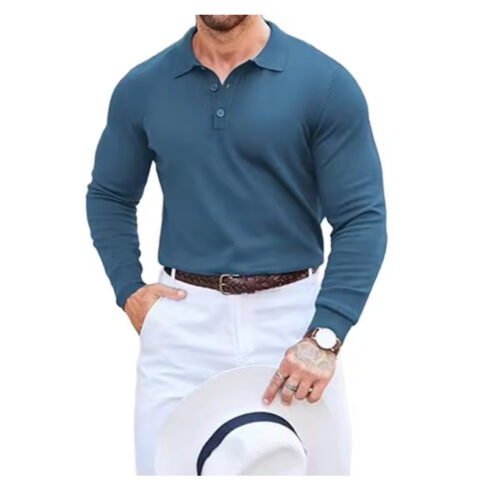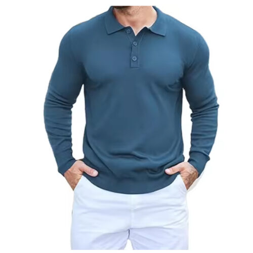 Men’s Knitted Polo. A masterclass in minimalist design, this Solid Color Polo is crafted from a high-quality Long Sleeve Knit Polo fabric that provides exceptional comfort and a sophisticated drape. Engineered as a cornerstone of Smart Casual Knitwear, it offers a sharp, contoured silhouette that transitions effortlessly from the boardroom to a weekend social. The unique Teal Texture Top finish adds a layer of quiet luxury, ensuring an all-match aesthetic that pairs perfectly with tailored trousers.