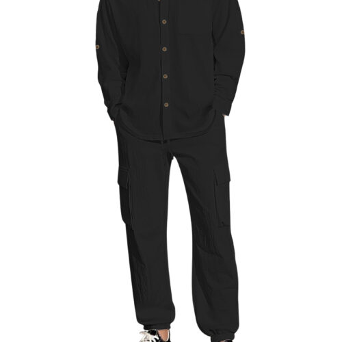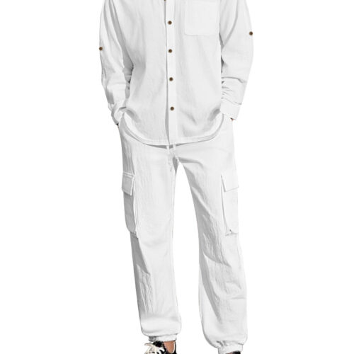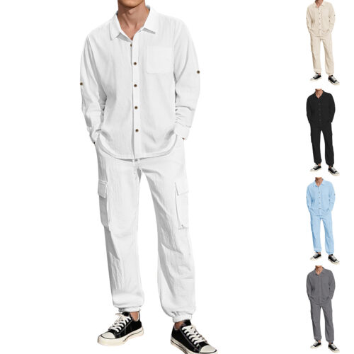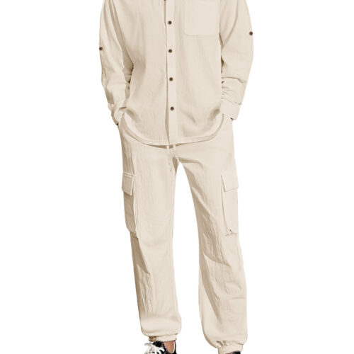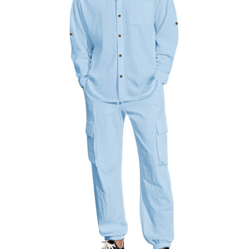 Men’s Linen Shirt and Pants Set sophistication is redefined in this cohesive two-piece design, a cornerstone for the modern summer wardrobe. This casual summer two-piece is crafted from a high-density, breathable linen blend that provides a high-sense tactile finish. As a unique breathable linen overalls suit, it features a refined long sleeve lapel shirt paired with matching trousers for a streamlined look. This long sleeve lapel leisure set offers a tailored silhouette, functioning as elite relaxed fit vacation wear for resort travel or coastal events.