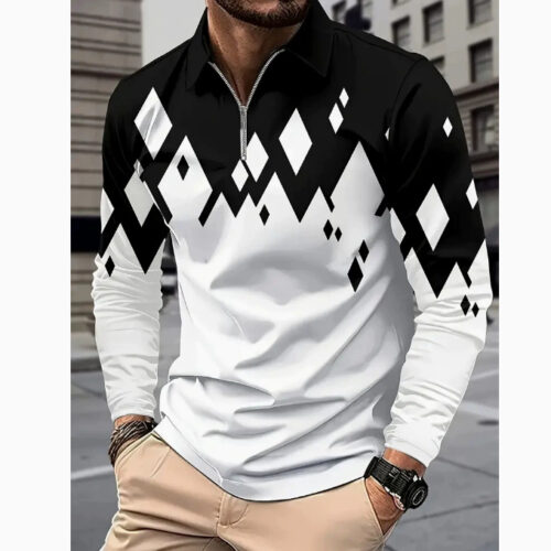 Upgrade your transitional wardrobe with this premium Men’s Long Sleeve Polo. This sophisticated Zipper T-shirt Top features a contemporary Color Matching Polo design with bold blue tones and a crisp Striped Long Sleeve base. Crafted for versatility, this Casual Men’s Top is finished with a sleek silver-tone zipper placket, offering a modern alternative to the traditional button-down. Its tailored fit and athletic-inspired aesthetic make it an all-match essential for 2026, perfect for layering during cooler spring mornings or wearing solo for a sharp city look.
