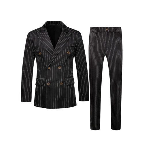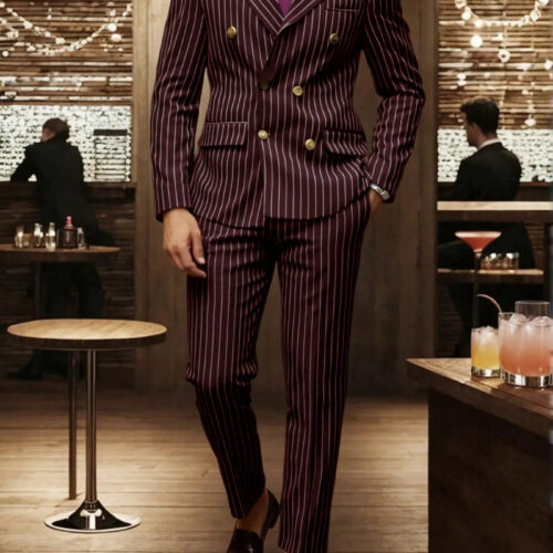 Men’s Pinstripe Suit excellence is redefined in this commanding double-breasted design, a cornerstone for the modern executive wardrobe. This double breasted business suit is crafted with precision, featuring gold-tone button accents and a high-sense tactile finish. As a sophisticated slim fit formal two-piece, it offers a sharp silhouette and impeccable drape for high-stakes meetings. This peak lapel executive suit provides a powerful aesthetic, functioning as elite professional stripe tailoring that transitions perfectly from the boardroom to upscale evening events.