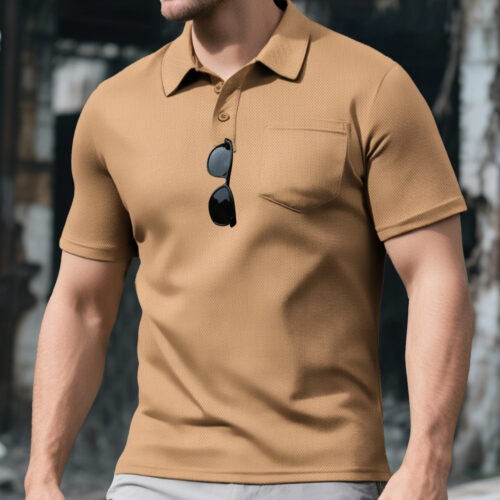 Men’s Pocket Polo. Designed with a Loose Short Sleeve cut for maximum breathability, this Light Blue Polo Shirt features a classic Lapel Sport Casual collar and a functional chest pocket for a touch of utility. Crafted as a Versatile Trendy Top, it offers a refined yet relaxed silhouette that transitions effortlessly from the office to the weekend. Its all-match aesthetic makes it a foundational piece for the summer season, providing a polished look for any casual occasion.