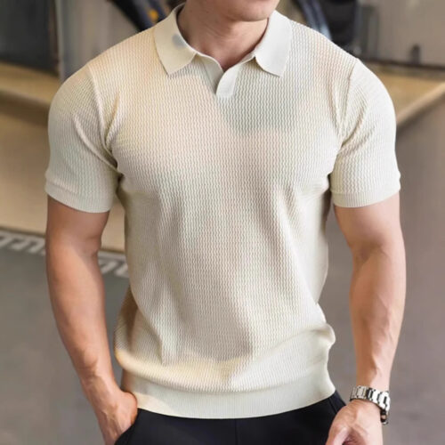 This premium Men’s Polo Shirt. A standout Knitted T-shirt, it features an intricate Waffle Knit Top texture that offers a luxurious hand-feel and superior breathability. Designed with classic Short Sleeves Polo styling and a refined Turn-down Collar, this piece provides a sharp, tailored silhouette without sacrificing comfort. Its rich cognac brown hue and all-match aesthetic make it a quintessential staple for the 2026 season, perfect for transitioning from coastal leisure to high-end urban dining.