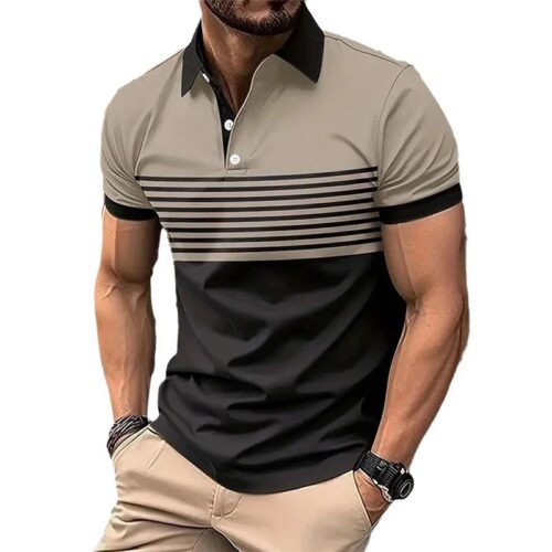 Redefine your urban wardrobe with this premium Men’s Polo T-shirt. A standout in our Plain Printing Series, this Short Sleeve Polo features a sophisticated Color Block Polo design in sage green and deep black, accented by sharp horizontal stripes. Engineered for versatility, this Casual Striped Polo offers a tailored regular fit and a soft-touch collar, making it an all-match essential for 2026. Whether paired with chinos for the office or denim for the weekend, its modern aesthetic ensures a polished, effortless look.