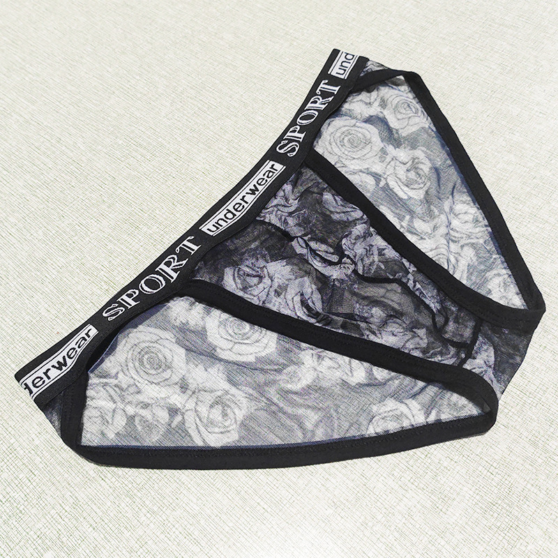 The Men’s Printed Mesh G-String combines a daring aesthetic with ultra-breathable performance. Featuring a vivid See-Through Rose Panties pattern, this set utilizes high-definition floral graphics on a delicate, transparent mesh base. Designed as High-Slit Erotic Briefs, the cut maximizes leg movement and visual appeal, while the Floral Transparent Underwear fabric offers a soft, “barely-there” sensation. Finished with a bold, elasticized Sporty Mesh T-Back waistband, these panties provide a secure fit for those who want to blend athletic branding with provocative style.