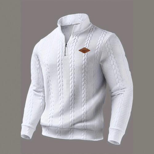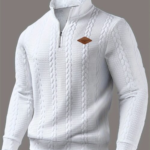 Men’s Quarter Zip Pullover excellence is redefined in this textured long-sleeve design, a cornerstone for any sophisticated cold-weather wardrobe. This textured knit long sleeve is crafted from a premium thick-weave fabric that provides a high-sense tactile finish and exceptional warmth. As a standout cable knit casual shirt, it features an intricate braided pattern and a functional zippered neckline for a modern edge. This slim fit winter top offers a tailored silhouette, functioning as a high-style smart casual mock neck that transitions perfectly from the office to evening social gatherings.