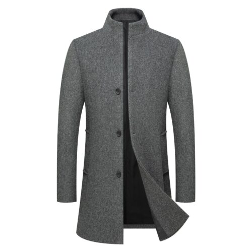 Men’s Stand Collar Coat designs are currently leading the trend for sharp, architectural fashion across European cities. This High Neck Woolen Jacket provides superior protection against wind while maintaining a polished, modern look. Engineered as a Slim Fit Car Coat, it offers the perfect mid-length cut for ease of movement during daily commutes. Whether styled as a Smart Casual Overcoat for weekend outings or as a piece of sophisticated Mandarin Collar Outerwear for formal occasions, its solid-color minimalist aesthetic makes it an indispensable winter staple.