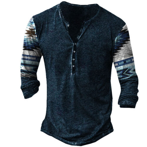 This mens streetwear essential brings a rugged, southwestern edge to the modern urban wardrobe. Utilizing high-definition Digital Printing, this Men’s Henley Shirt features an authentic “Texas Longhorn” graphic and patterned sleeves for a unique Western Graphic Tee look. The Vintage Long Sleeve Top silhouette offers a comfortable, textured feel that transitions perfectly from outdoor settings to city streets. Durable and stylish, this all-match top is designed for those who value heritage-inspired fashion with a modern, athletic fit.