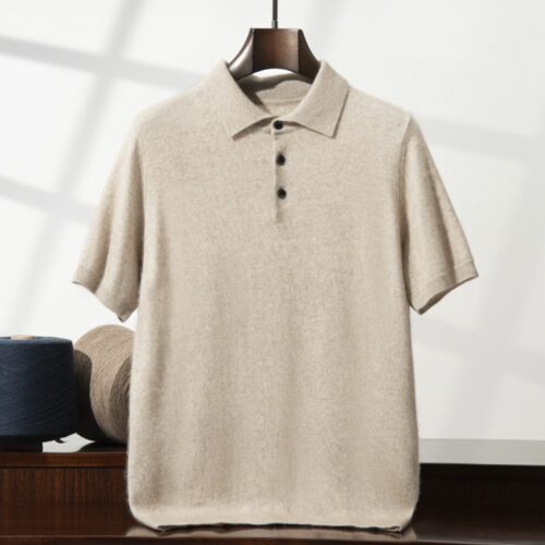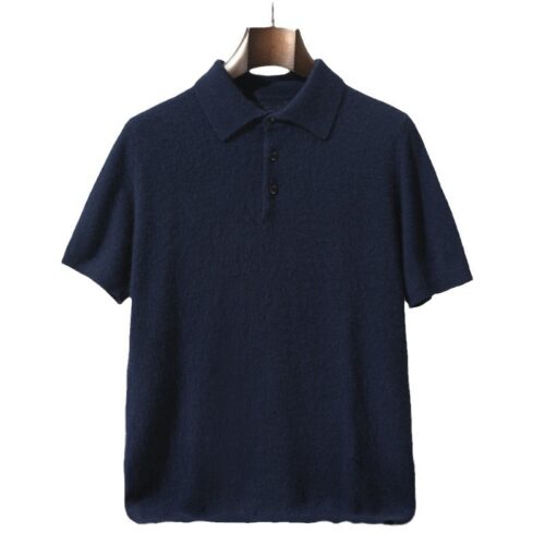 Men’s Summer Polo. A quintessential Short-sleeved Knit, this piece features a soft, brushed texture that offers the cozy feel of a Lightweight Sweater in a breathable seasonal silhouette. Designed with a Business Casual Loose fit, it serves as a Versatile Undershirt for layering or a standout solo piece. Its calm blue hue and all-match aesthetic make it a foundational staple for, transitioning seamlessly from professional office environments to relaxed weekend leisure.