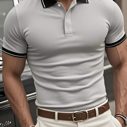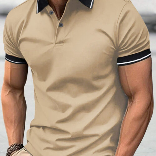 this premium Men’s Summer Polo Shirt. Designed with a sophisticated Business Lapel Shirt collar, this Casual Button Short Sleeve essential is distinguished by its refined Tipped Collar Polo detailing in high-contrast tones. Crafted for a sharp, tailored fit, it serves as the ultimate Smart Casual Top for the modern workplace. The breathable tan fabric and all-match aesthetic ensure a polished look that transitions seamlessly from corporate meetings to evening social events.