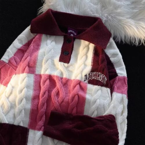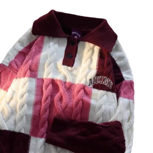 Men’s Sweater luxury meets retro charm in this contrast-colored cable-knit piece, a standout staple for any fashion-forward collection. This cable knit polo sweater features a sophisticated 3D weave that provides exceptional warmth and a premium, tactile feel. Designed as a piece of contrast color knitwear, it uses bold panels to create a sharp, athletic silhouette. The classic turn down collar jumper neckline adds a touch of refined professionalism, while the vintage style varsity sweater aesthetic ensures a youthful, “high sense” edge perfect for campus life or casual urban outings.