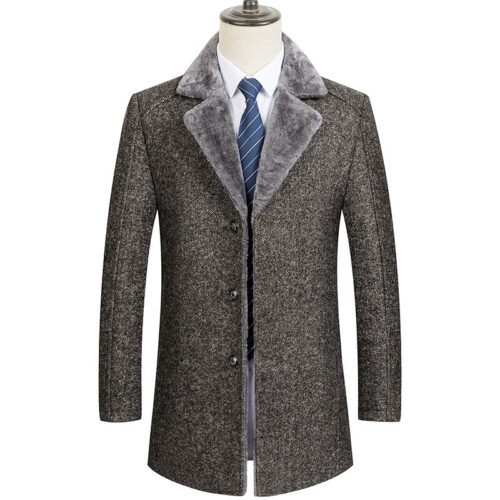 Men’s Wool Coat with Fur Collar is the ultimate choice for the modern gentleman seeking warmth and sophistication. This Winter Overcoat for Men is meticulously crafted from premium wool blends to withstand the harshest European winters. Designed as an Elegant Woolen Jacket, it features a luxurious detachable fur trim that elevates its profile, making it the perfect Business Casual Outerwear for commuting or formal events. The Thick Warm Lapel Coat construction ensures maximum heat retention without compromising on style.