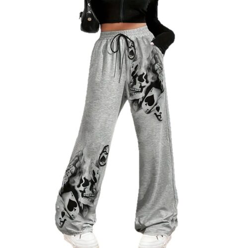 Oversized Casual Lounge Pants redefine off-duty style by blending maximum comfort with a bold, rebellious aesthetic. These Skull Print Wide Leg Joggers feature a striking grayscale tire-track motif that adds an alternative edge to your daily rotation. Designed as Gothic Graphic Sweatpants, the soft, breathable fabric ensures a relaxed fit for all-day wear. As High Waisted Streetwear Bottoms, they offer a flattering silhouette that pairs effortlessly with cropped tops. Complete your look with these Edgy Drawstring Tracksuit Bottoms for a unique, street-ready vibe that stands out.
