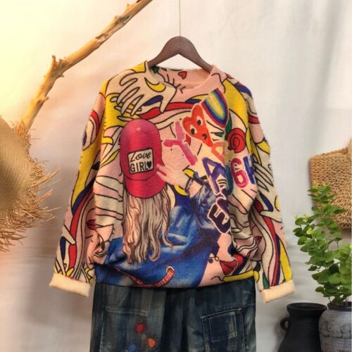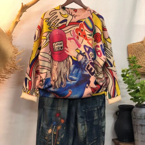 Oversized Graphic Sweater: Elevate your daily look with this stunning Floral Print Pullover, a standout piece in our new collection. Inspired by Vintage Aesthetic Jumpers, this top offers a relaxed fit that is perfect for layering during the colder months.