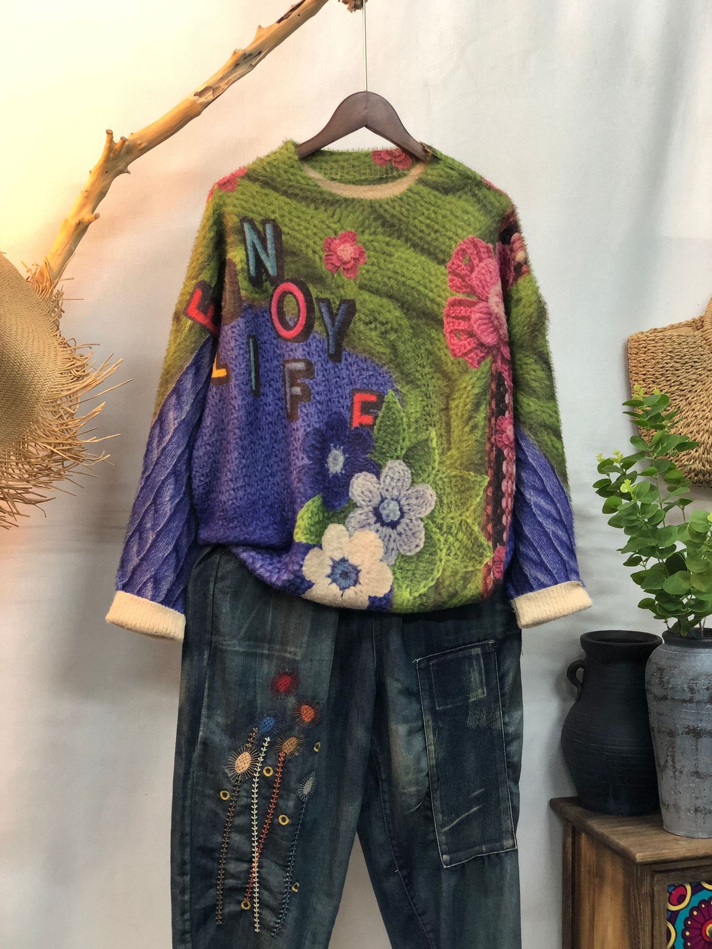 Oversized Graphic Sweater: Elevate your daily look with this stunning Floral Print Pullover, a standout piece in our new collection. Inspired by Vintage Aesthetic Jumpers, this top offers a relaxed fit that is perfect for layering during the colder months. As an essential part of your Cozy Winter Knitwear rotation, this Bohemian Style Sweater combines artistic flair with a soft, loose-fitting knit. Whether you’re out for coffee or relaxing at home, this sweater provides effortless style and maximum comfort.
