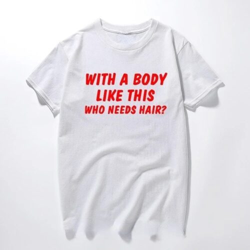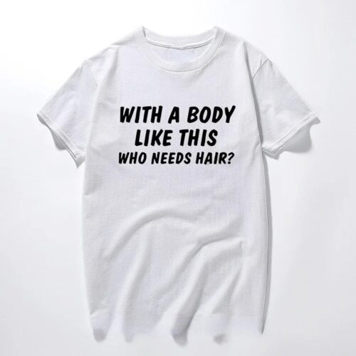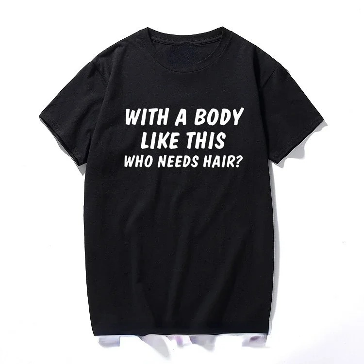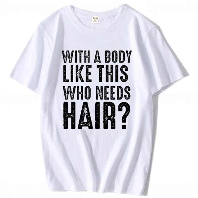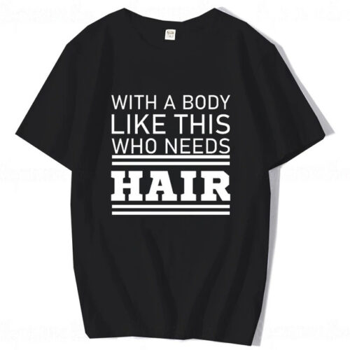 Oversized Graphic Tees Men from regalwear.eu bring a punch of personality to your summer wardrobe. This Funny Self-Deprecating Slogan Shirt features the iconic “With a Body Like This, Who Needs Hair?” print, making it a definitive Men’s Plus Size Cotton Summer Top for 2026. Designed as Bold Letter Print Casual Wear, the high-contrast white-on-black text ensures your message is heard loud and clear. Crafted as a Breathable Boxy Fit Humour Tee, this 100% cotton top provides an inclusive and comfortable fit for every dapper gentleman.