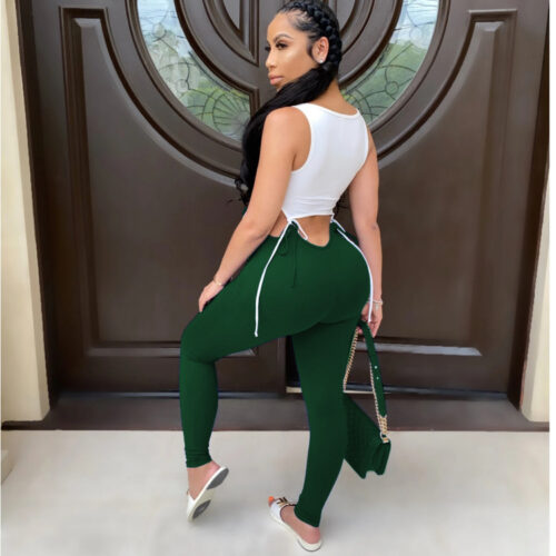 Patchwork Overalls in this striking contrast-color design redefine modern evening wear with a bold, artistic flair. This hollow out sexy romper features daring waist-exposing cutouts and adjustable tie-accents that create a stunning two-tone cut out bodysuit effect on the upper half. Crafted as a high-stretch sleeveless trousers one-piece, it flows into a sleek, leg-lengthening silhouette perfect for night-out glamour. This bodycon cutout party jumpsuit ensures you stand out with a confident, sculpted look that blends sophisticated color-blocking with edgy, contemporary fashion.