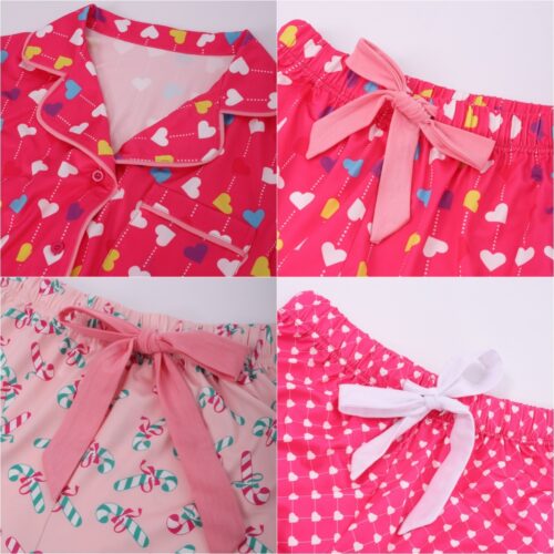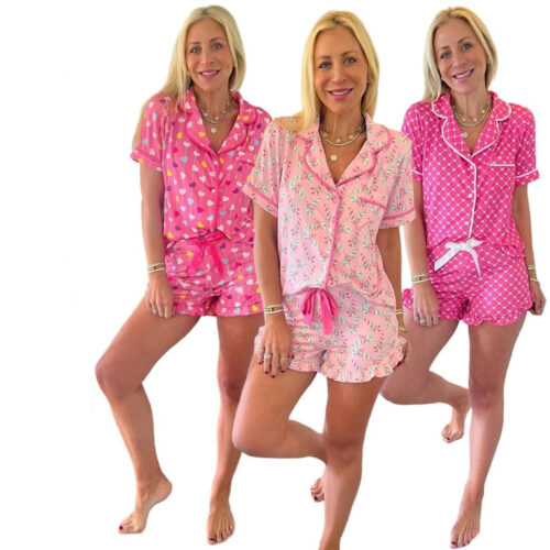 Print Pajama Set essentials are a must-have for your seasonal wardrobe, combining playful aesthetics with ultimate comfort. This Short Sleeve Nightwear ensemble features a charming, vibrant Heart Pattern Loungewear design that stands out in any collection. Constructed as a classic Button Up Sleepwear set with ruffle-hem shorts, these Women’s Summer PJs offer a breathable, relaxed fit perfect for warm European nights and cozy mornings alike.