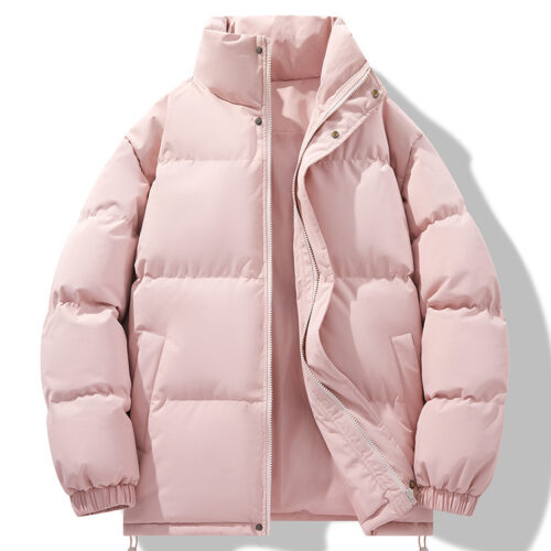 Puffer Jacket excellence is redefined in this soft pink, high-volume design, a cornerstone for any modern winter rotation. This unisex padded winter coat features premium synthetic insulation that provides a high-sense tactile finish and superior heat retention. As a standout stand collar thermal parka, it offers a refined silhouette with a protective zip-up neck and elasticated cuffs. This casual oversized bubble jacket functions as elite windproof couple’s outerwear, transitioning perfectly from urban streetwear to cold-weather travel with effortless, trendy style.