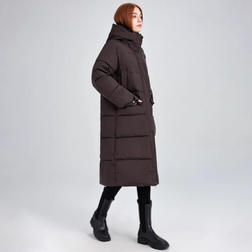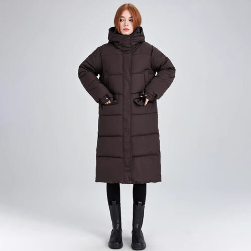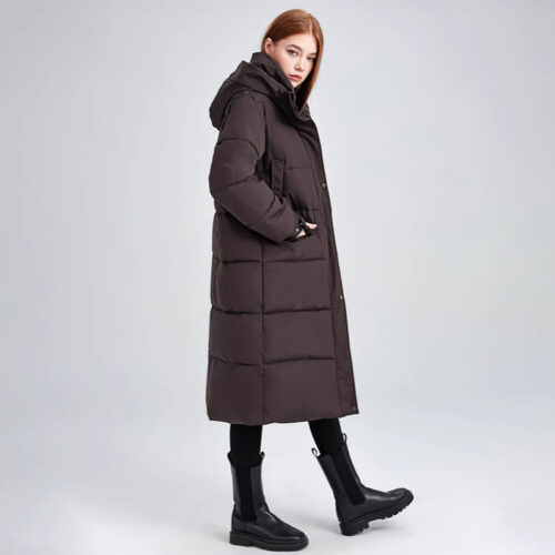 Puffer Jacket excellence defines this statuesque longline essential, meticulously crafted with high-density insulation to provide maximum warmth in freezing climates. This long hooded parka features a streamlined, quilted silhouette that serves as the ultimate cotton-padded winter coat for daily urban commutes. As a premier choice for insulated longline outerwear, it includes a protective deep hood and windproof closures to shield against harsh elements. This thick warm snow coat ensures a polished, sophisticated aesthetic while offering a cozy, cloud-like feel throughout the season.