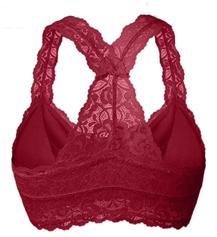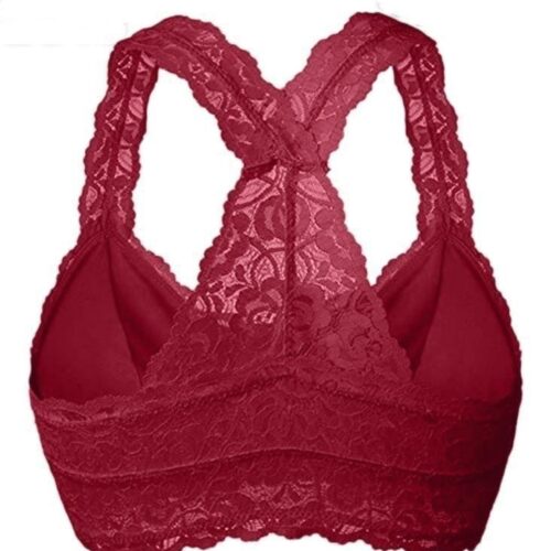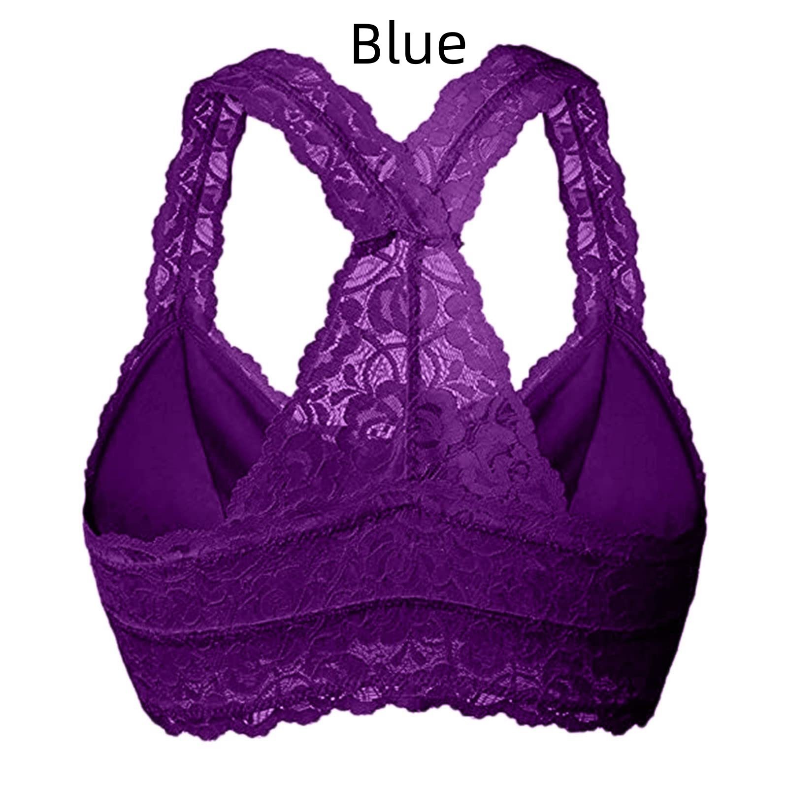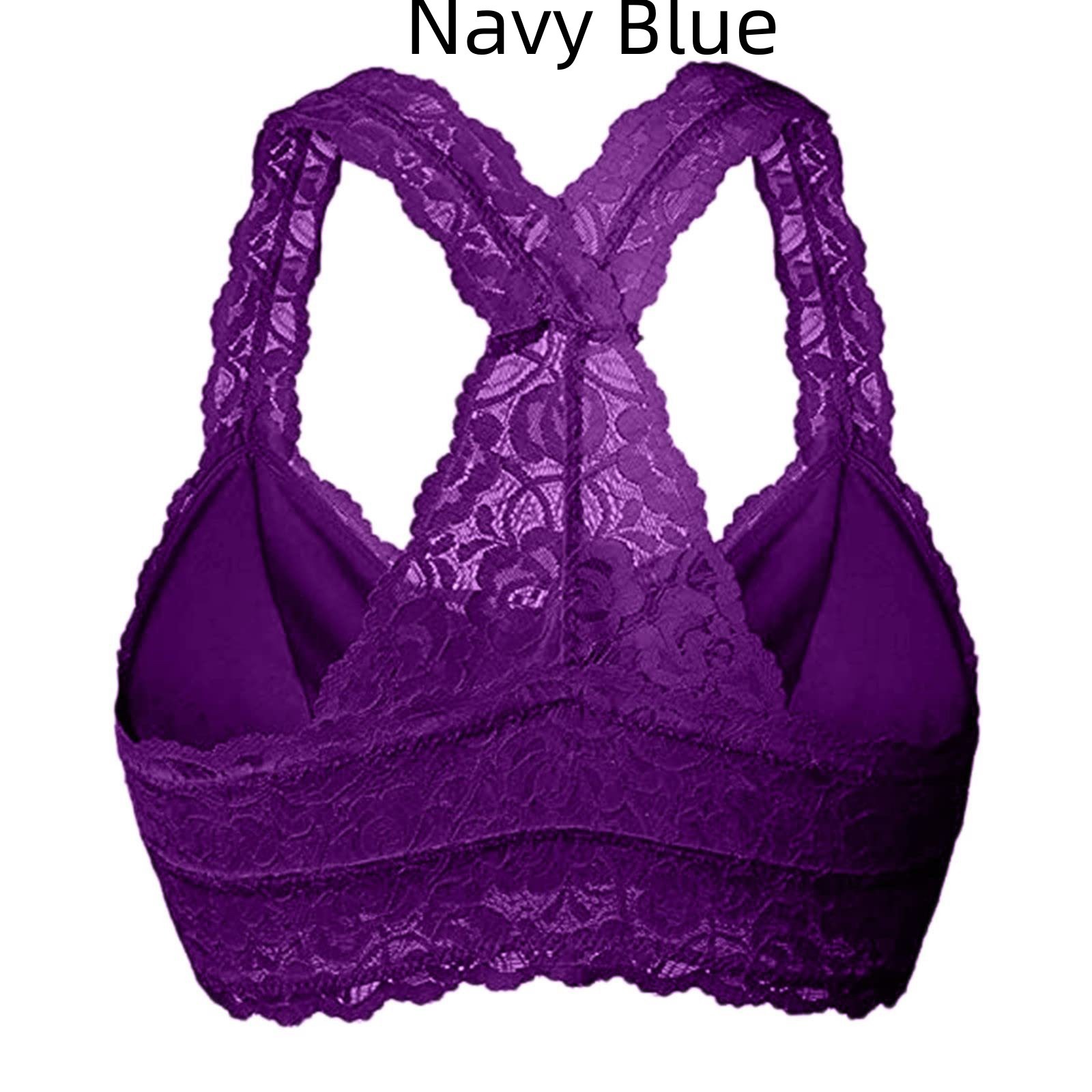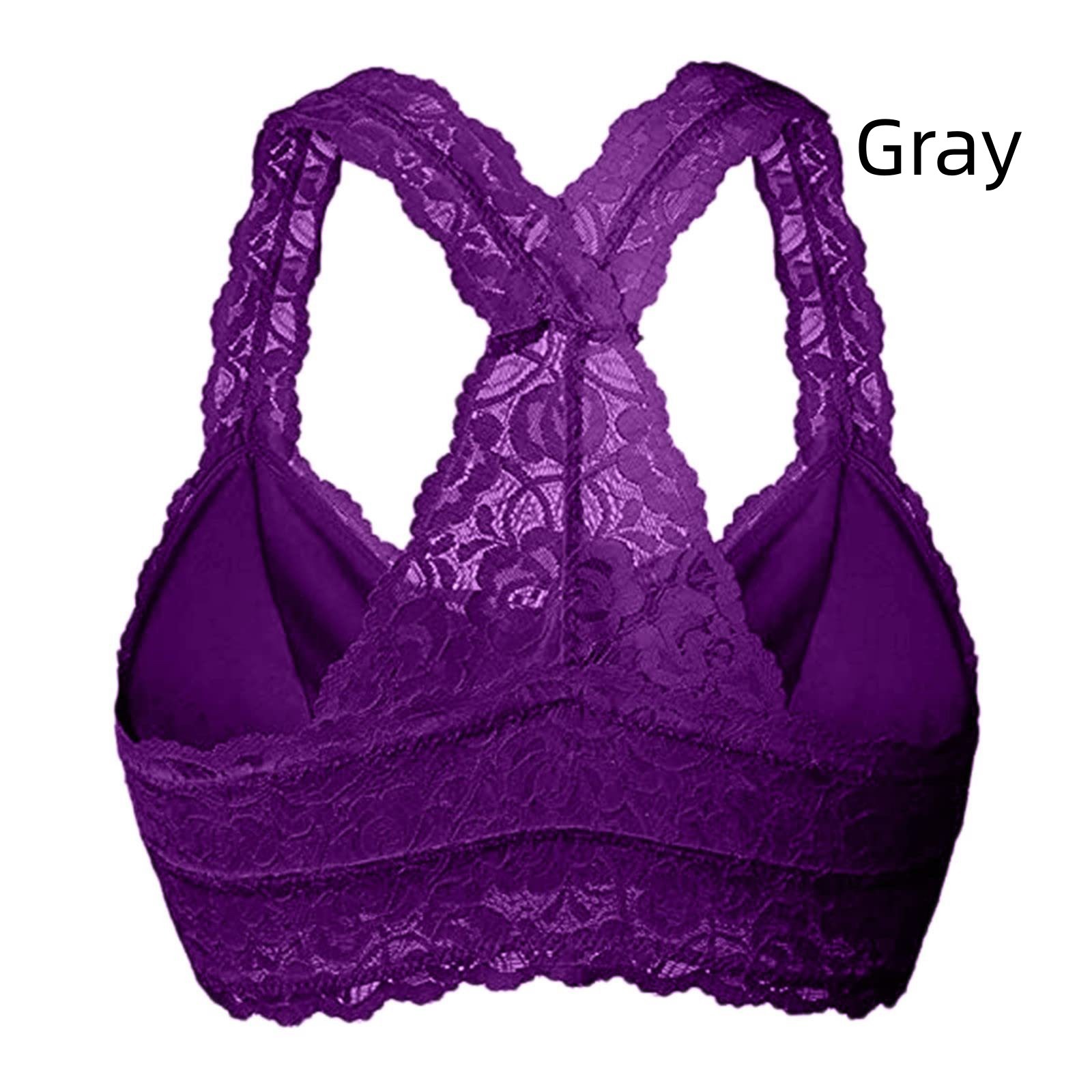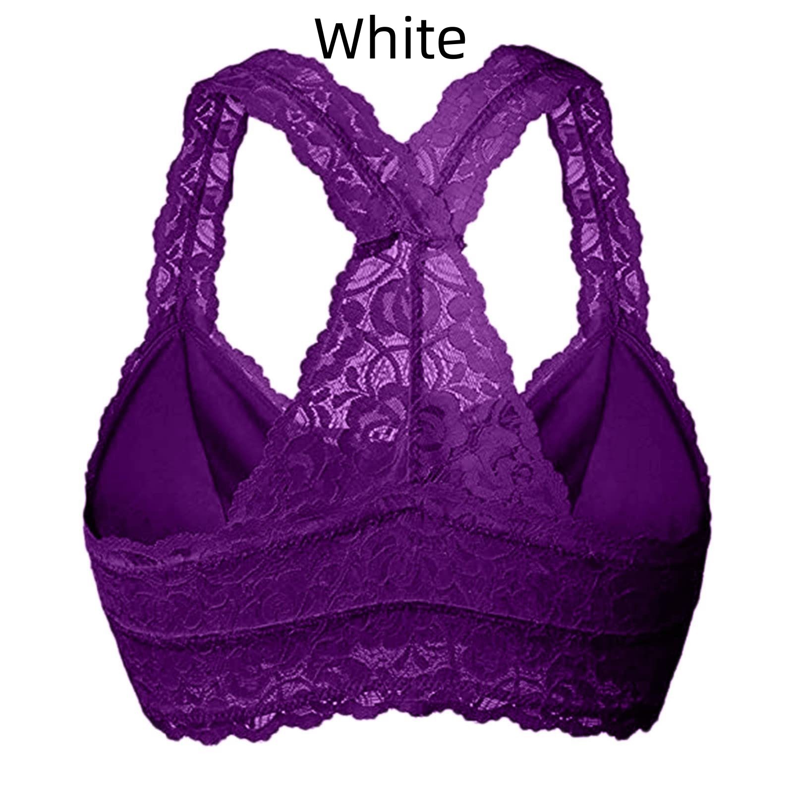 Purple Lace Bra Women Wireless — turn heads with this stunning purple lace bra racerback sexy design. Crafted in vibrant full floral lace with a deep V-neckline and beautiful criss-cross racerback strap, this purple lace bra V neck floral style delivers bold femininity every day. The padded cups and scallop lace hem of this purple lace bra padded crossback provide comfort and flattering support. Wear as a fashion top or intimate wear — this purple lace bra sleepwear vest is irresistibly versatile and chic.
