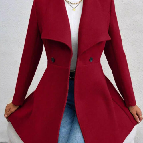 Red Wool Coat is the definitive 2026 statement piece, offering an impeccable fusion of high-fashion “Quiet Luxury” and technical winter warmth. This Peplum Waist Wool Jacket is meticulously crafted with a structured peplum flare and a Double Breasted Lapel Overcoat closure to create a sharp, sophisticated silhouette that commands attention in any European capital. As a premium Tailored Hourglass Winter Coat, it utilizes high-density wool fibers to provide exceptional thermal insulation while maintaining a slim, non-bulky profile. This Vibrant Crimson Mid-Length Parka alternative bridges the gap between rugged utility and evening elegance, featuring deep pockets and a wind-resistant lapel that shields against the harsh winter frost. Elevate your seasonal rotation with this bold, protective essential designed for the modern woman who values both style and substance.