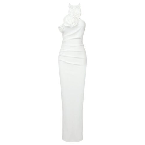 Rose Dress elegance defines this breathtaking 2026 statement piece, perfect for those seeking a high-fashion edge. This stunning Halter Neck Maxi silhouette features an oversized, artisanal 3D Floral Evening Gown detail that serves as the centerpiece of the design. Crafted as Luxury White Partywear, the fluid fabric and sculptural neckline create a “High Sense” look that is ideal for weddings, galas, and upscale summer events. This High Sense Formal Apparel ensures you stand out with a sophisticated, runway-inspired aesthetic that is currently trending across Europe’s fashion capitals.