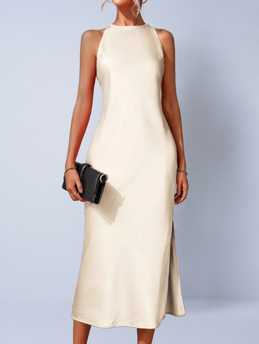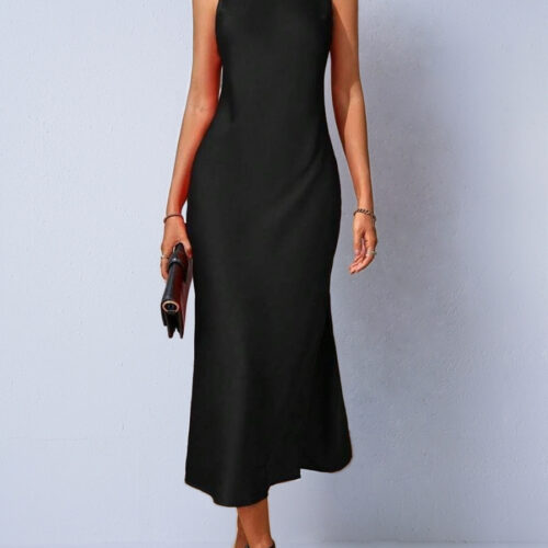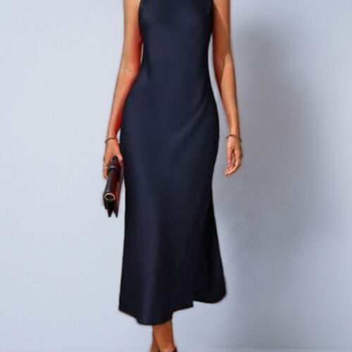 Satin Midi Dress Green Women — radiate pure elegance with this stunning satin midi dress sleeveless halter design. Crafted in luxurious silky sage green satin, this satin midi dress side slit elegant style features a sleek racerback open design and figure-skimming slim fit silhouette. The satin midi dress backless party styling adds effortless sophistication for dinners, events, or special evenings. This satin midi dress slim fit luxury piece is minimalist, timeless, and breathtakingly chic every wear.