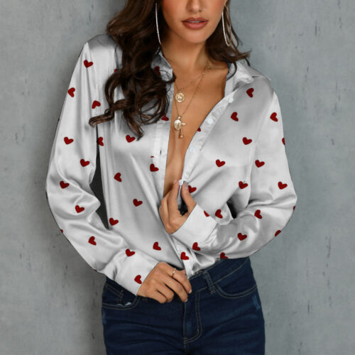 Satin Print Shirt Women is a standout piece for the 2026 fashion season, blending bold graphics with a luxurious feel. This Digital Print Long Sleeve Top features a playful red lip motif set against a crisp white background for a modern, high-contrast look. The Lip Print Satin Blouse is crafted from a smooth, glossy fabric that drapes elegantly, serving as a premium White Silk Patterned Shirt alternative. Designed for the style-conscious European woman, this Versatile Casual Party Blouse transitions effortlessly from a daring office look to a chic evening ensemble.