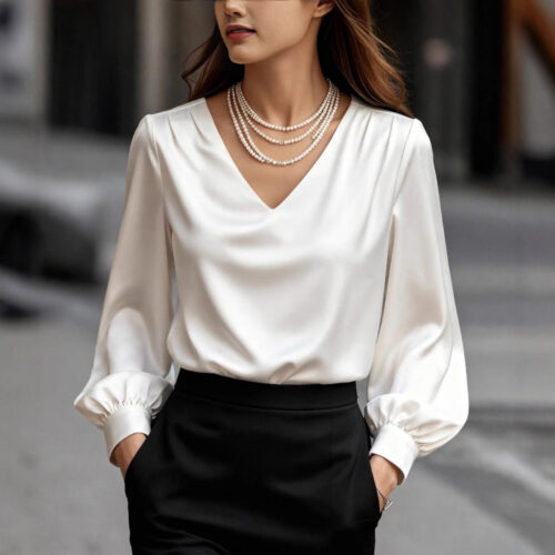 Satin V Neck Blouse is the ultimate expression of luxury and grace for your 2026 wardrobe. This Elegant Lantern Sleeve Top features a shimmering finish that captures the light beautifully, making it an essential French Style Silk Shirt for high-end occasions. The Sophisticated Bubble Sleeve Blouse design provides a dramatic yet refined silhouette, while the Glossy Satin Party Top fabric ensures a comfortable, lightweight feel throughout the evening. Perfect for the “light mature” aesthetic, this blouse pairs effortlessly with tailored trousers or skirts for a polished European look.