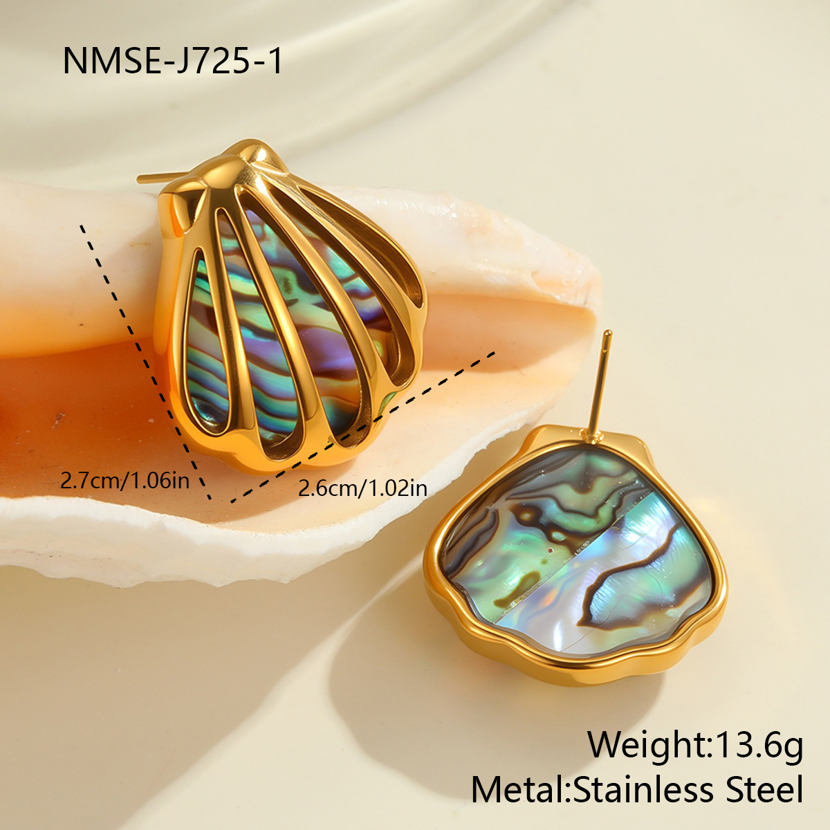 Color: NMSE-J725-1 shell stud earrings, NMSN-J725-2 shell necklace
