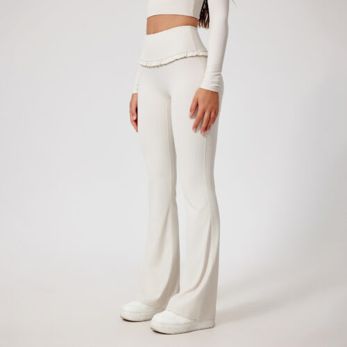 Scrunch Butt Leggings redefine athletic elegance in the Pantalon Grace, meticulously designed with a unique frill detail to provide a feminine touch to your workout wardrobe. These booty lifting yoga pants feature a specialized rear-ruched seam, offering a sophisticated look that serves as the ultimate ruffle waist fitness tights for a sculpted silhouette. As a premier choice for seamless sculpting activewear, they utilize a breathable, high-stretch fabric blend to ensure total freedom of movement. These contouring gym bottoms transition effortlessly from the studio to the street with a polished, high-performance edge.