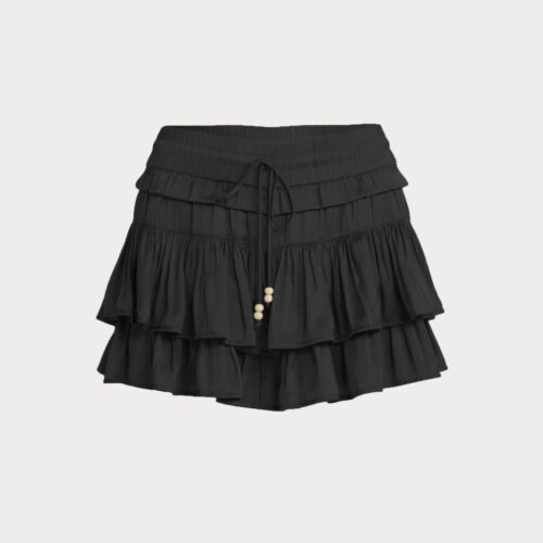 Short Skirt style is redefined with this high-waisted, tiered design that combines a feminine aesthetic with practical functionality. This ruffle mini skort features built-in liners, providing the confidence to move freely while maintaining a playful, layered look. As a versatile tiered summer skirt, it boasts a soft brown hue and a lightweight fabric perfect for warm-weather outings. This brown boho skirt with shorts includes an adjustable waist with beaded drawstring accents for a custom fit. Experience the ultimate blend of comfort and trend with this high waisted drawstring skirt, a must-have for your casual wardrobe.