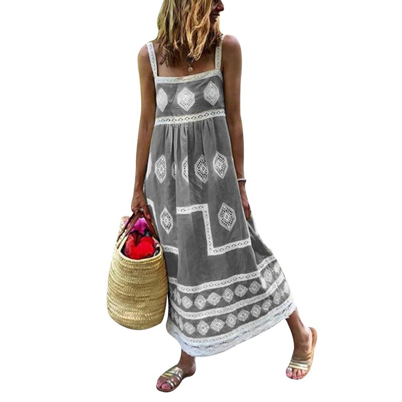 Short Sleeve Printed Kaftan V Neck Boho Summer Dress