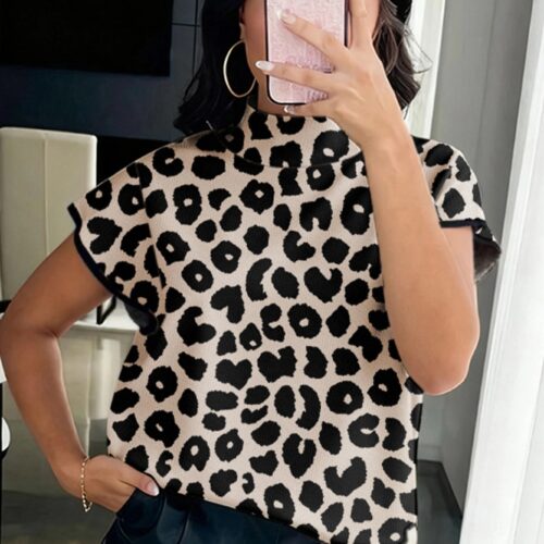 Short Sleeve Sweater Women collections are the ultimate “hero piece” for the 2026 European season, blending wild aesthetics with a highly refined, architectural fit. This sophisticated Leopard Print Short Sleeve Sweater features a premium dense-knit texture that provides the structural elegance of a Black Leopard Turtleneck Top while maintaining a lightweight, breathable feel. Designed as a Short Sleeve Mock Neck Knit, it functions as a versatile “desk-to-dinner” staple that elevates high-waisted denim or tailored trousers with ease. Whether styled as an Animal Print Turtleneck Sweater for a night out in Paris or paired with an oversized blazer for a London city commute, its rich texture and intentional cut ensure you master the “refined animalia” trend currently viral across the EU.