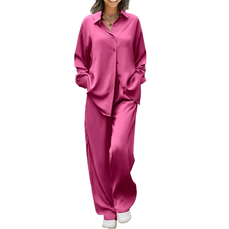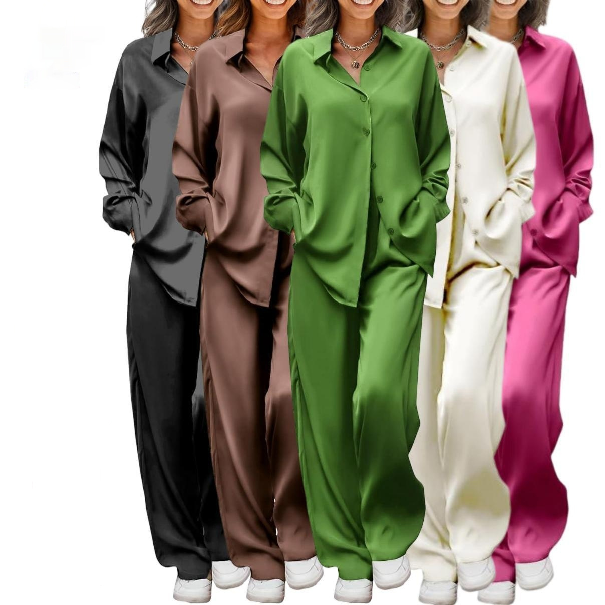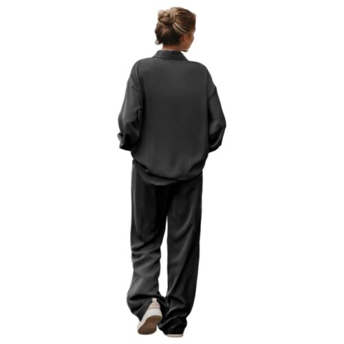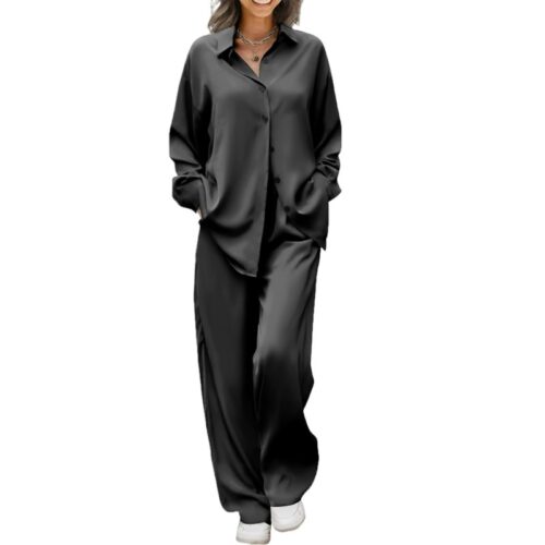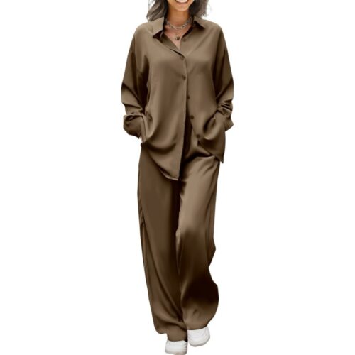 Silk Pajama Set elegance meets everyday comfort in this premium two-piece collection. Featuring a sophisticated Button Down Sleepwear shirt, this set is designed for those who appreciate refined relaxation. The Wide Leg Lounge Pants provide a fluid, flattering silhouette, while the Oversized Long Sleeve Top ensures a breathable and relaxed fit. Perfect for the modern home, these Minimalist Women’s PJs offer a touch of luxury to your nightly routine.