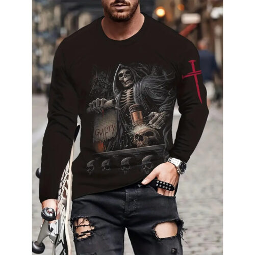 Skull Long Sleeve redefines the urban silhouette with its bold, hyper-realistic 3D design. This Gothic 3D Skeleton Top features a striking central graphic that serves as the ultimate Men’s Hip Hop Graphic Tee for the modern wardrobe. Engineered as an Urban Dark Aesthetic Shirt, the premium breathable fabric and Loose Fit Retro Bone Print provide a relaxed.