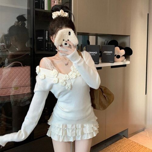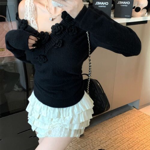 Slim Fit V-Neck Jumper essentials are at the heart of the 2026 “Polished Minimalist” movement in Europe. This stunning Rosette Detail Sweater features handcrafted 3D floral accents that transform a classic silhouette into a contemporary work of art. Designed as an Off Shoulder Red Knit, it offers a versatile neckline that can be worn elegantly dipped to showcase the collarbones. As a premier 3D Flower Embellished Top, this jumper perfectly balances romantic textures with a sleek fit, capturing the viral Sweet and Spicy Aesthetic that transitions effortlessly from sophisticated office layering to a bold evening statement.