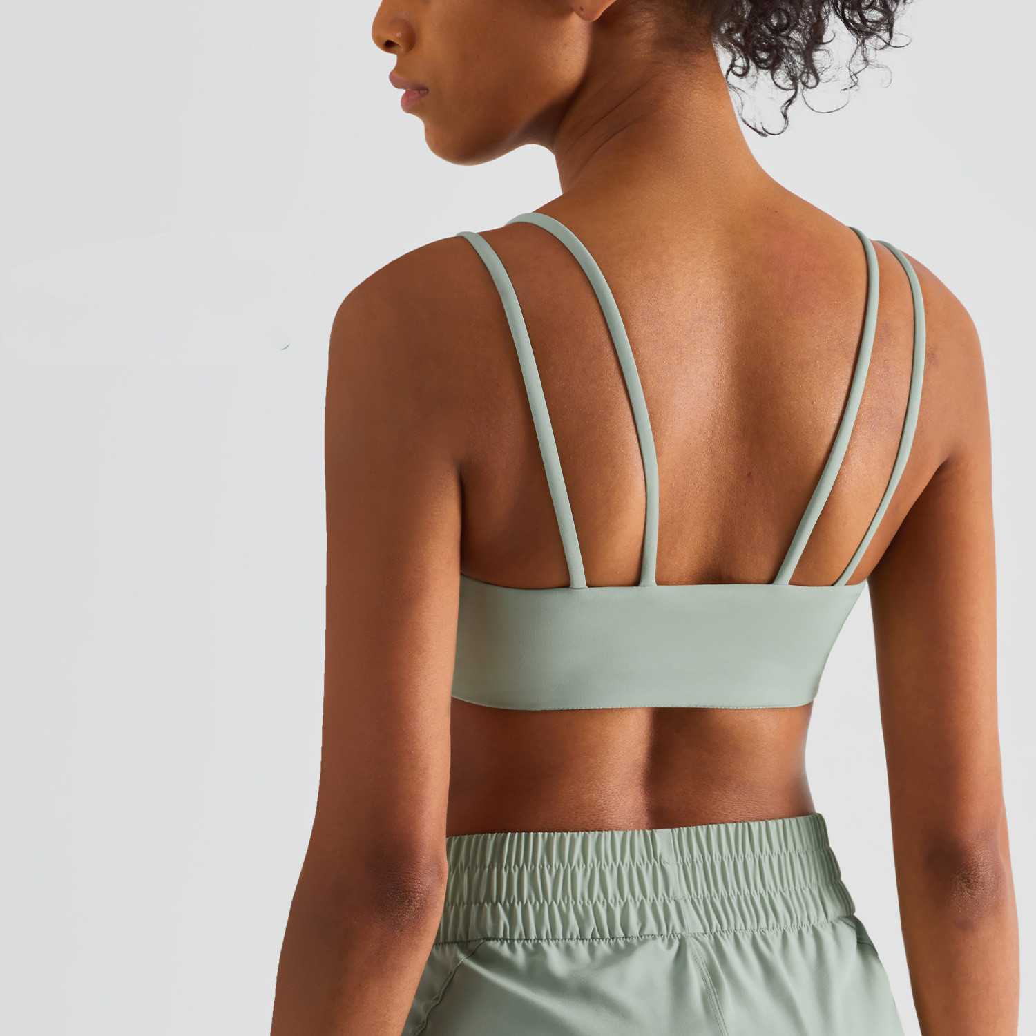 Strappy Back Sports Bra Women — combine performance and style with this stunning open back yoga bra black design. Featuring triple parallel multi strap workout bra detailing across a sleek open back, this seamless fitness crop bra delivers both support and head-turning aesthetics. Crafted in smooth black fabric, this sexy gym activewear bra top is perfect for yoga, pilates, gym sessions, or casual streetwear styling. Lightweight, flexible, and effortlessly chic — the ultimate activewear essential for modern women.