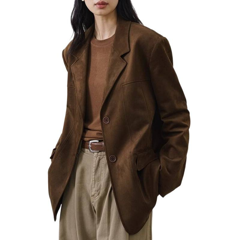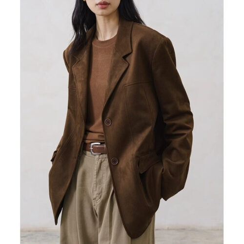 Product Content Suede Blazer sophistication defines this rich, coffee-colored silhouette, designed for those who appreciate premium texture and timeless style. This stunning coffee brown outerwear piece features a soft, matte finish that adds a touch of “quiet luxury” to any ensemble. As an oversized tailored jacket, it offers a relaxed yet polished fit that layers effortlessly over seasonal knits. Embracing vintage aesthetics blazer trends, the design includes classic notched lapels and a single breasted luxe coat closure, making it a versatile staple for both professional and casual high-street looks.