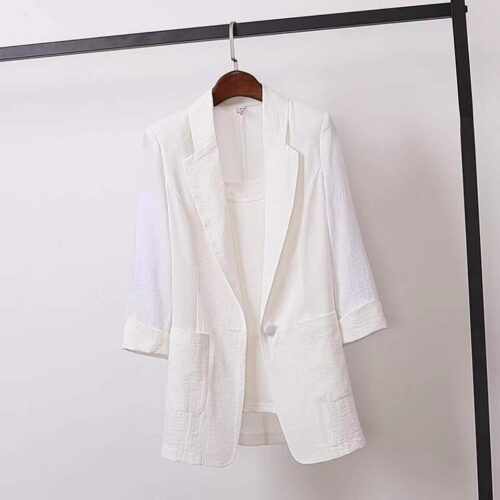 Product Content Summer Blazer comfort meets contemporary style in this airy collection, featuring a selection of vibrant and classic hues for versatile seasonal layering. This Korean slim fit jacket is designed with a streamlined silhouette that offers a tailored, professional look without the bulk of heavy fabrics. As a functional three quarter sleeve outerwear piece, it transitions smoothly from air-conditioned offices to outdoor events. Crafted from a breathable linen style coat material, it serves as the ultimate casual thin sunscreen clothing to keep you protected and cool.