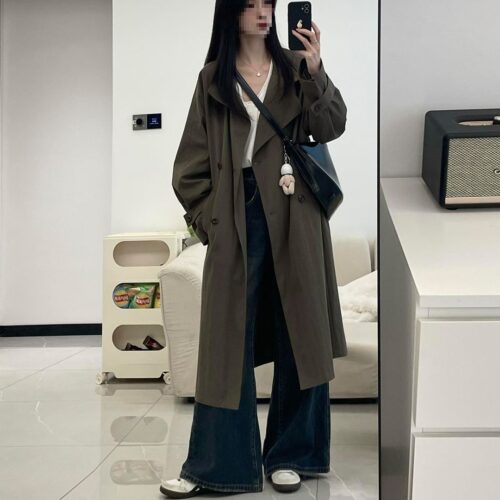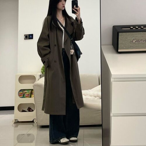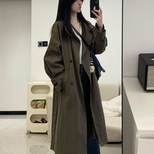 Trench Coat elegance defines this statuesque mid-length piece, meticulously tailored to provide a sophisticated yet effortless silhouette for the modern wardrobe. This korean style overcoat features a premium, lightweight fabric blend that serves as the ultimate mid-length outerwear for transitional weather layering. Designed as a loose fit spring parka, it includes refined button-down detailing and adjustable cuffs for a customizable fit. This minimalist belted jacket transitions seamlessly from professional city commutes to relaxed weekend outings with high-fashion ease.