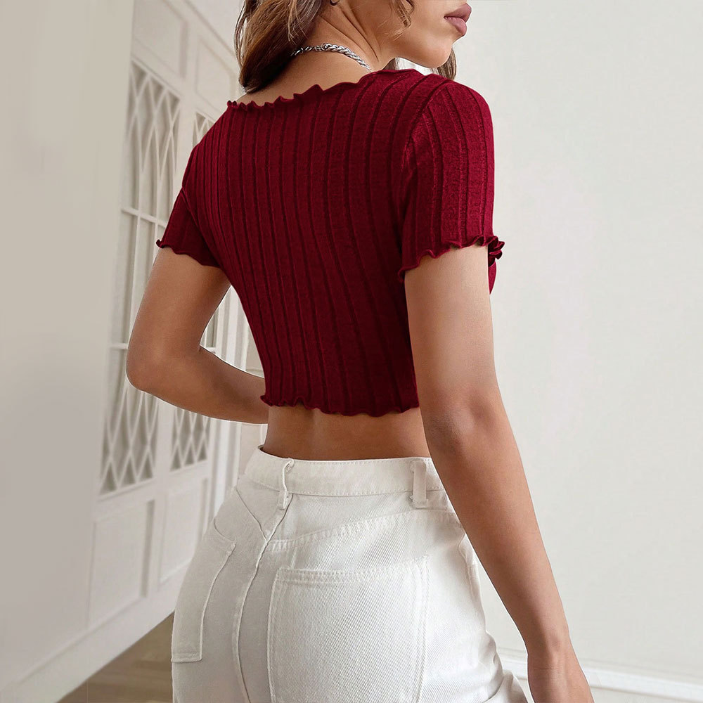 Be the first to review “V Neck T Shirts French Slim Fit Crop Top Sweet Spicy Tee”