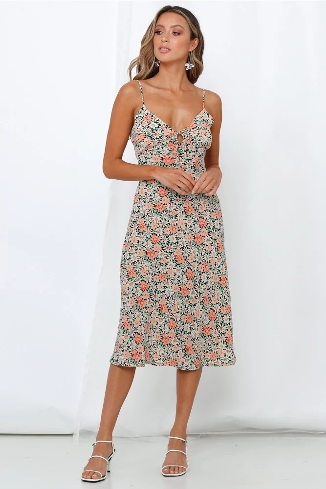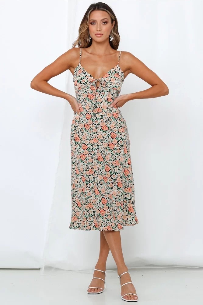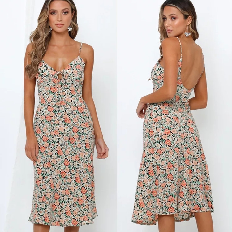 Vintage Floral Dress charm defines this exquisite pastoral piece, designed to bring a touch of romance to your summer wardrobe. This v-neck lace tea dress features a delicate floral print and intricate lace-up detailing at the bust for a timeless, feminine look. The pastoral style midi dress silhouette is elevated by adjustable tie strap summer gown accents, ensuring a personalized and comfortable fit. Finished with a daringly elegant backless floral dress design, this piece balances modest vintage inspiration with modern allure, making it perfect for garden parties and sun-drenched afternoons.