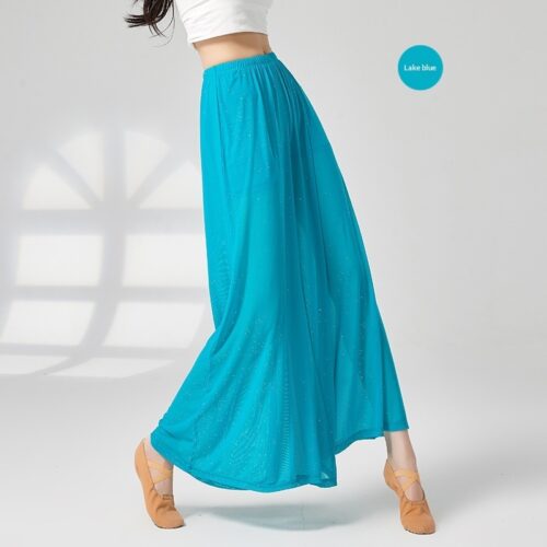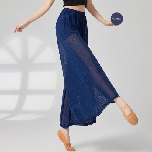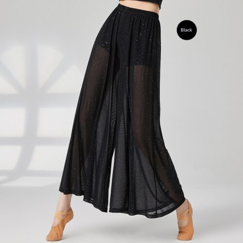 Wide Leg Dance Pants redefine graceful movement with a shimmering mesh overlay and integrated shorts for confident performance. These High Waisted Palazzo Trousers feature a flexible elastic waistband that stays secure during complex routines while elongating the silhouette. Designed with Sheer Mesh Wide Leg Pants detailing, the fabric catches the light beautifully, making them essential Classical Dance Practice Wear. Whether used for studio rehearsals or as Loose Fit Flowy Yoga Pants, the breathable, lightweight material ensures maximum range of motion and effortless elegance.