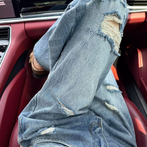 Wide Leg Jeans are the essential foundation for any modern casual look, offering a relaxed silhouette that balances style and comfort. These high waisted ripped denim pants feature bold knee destruction and frayed details for an authentic, lived-in aesthetic. Designed as loose fit distressed pants, they provide ample room for movement while maintaining a structured, flattering rise. These vintage wash baggy jeans showcase a classic light blue straight leg denim base that pairs effortlessly with crop tops or oversized knits for a versatile everyday vibe.