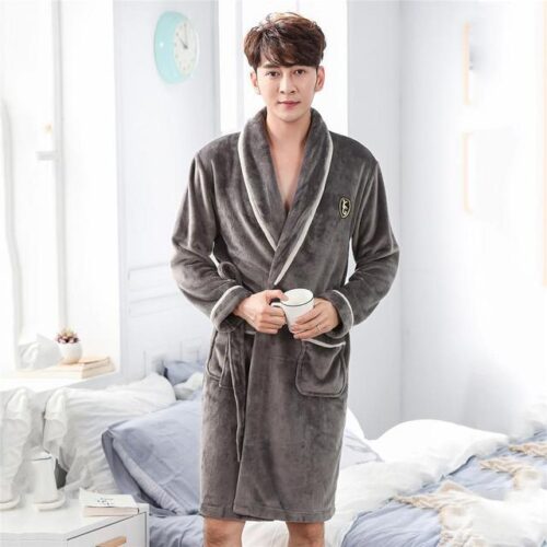 Our Winter Flannel Robe is the ultimate essential for cold-weather comfort, combining a classic silhouette with a premium feel. Designed as an elegant solid gown sleepwear piece, it features high-quality brushed fabric that provides exceptional warmth and a smooth, tailored drape. This casual fleece dressing gown includes a traditional shawl collar, deep side pockets, and a secure waist tie for an adjustable fit. Whether used as a soft warm bathrobe for men or a luxurious plush lounge robe for slow mornings, its durable construction ensures long-lasting softness and timeless style.