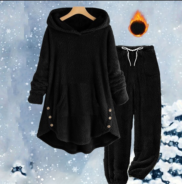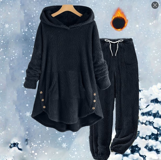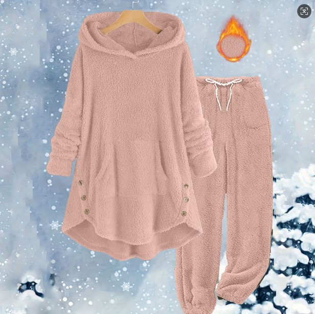 Women’s Fleece Loungewear Set is the ultimate choice for those seeking luxury and warmth during the colder months. This premium Plush Hooded Pajamas ensemble features a sophisticated Solid Color Winter Set design that offers a minimalist yet high-end aesthetic. The set includes a matching pair of Soft Sherpa Lounge Pants and a Long Sleeve Cozy Outfit top, both crafted from high-density plush fabric to ensure maximum heat retention and a velvet-soft feel against the skin throughout the European winter.